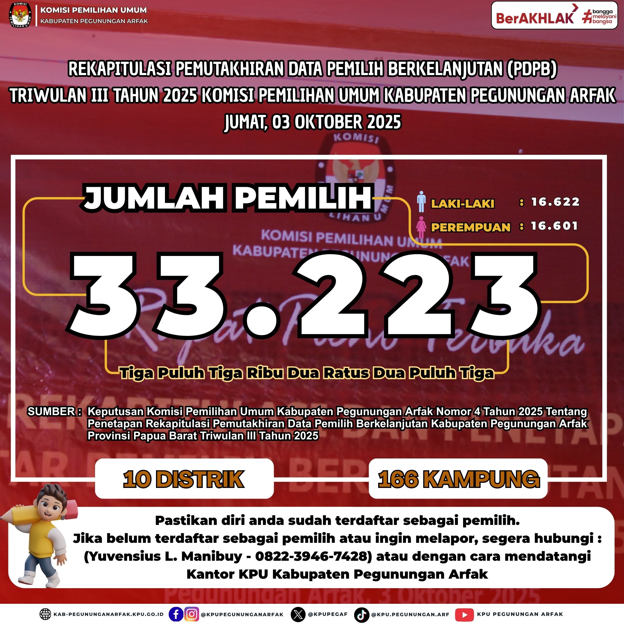 Rekapitulasi Pemutakhiran Data Pemilih Berkelanjutan (PDPB) Kabupaten Pegunungan Arfak Triwulan III Tahun 2025