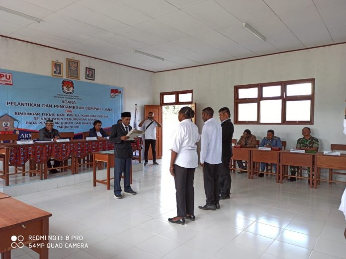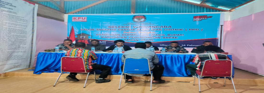 94 Peserta Calon Anggota PPD di Pegaf Jalani Tes Wawancara. Peserta calon anggota PPD jalani tes wawancara oleh KPU Pegaf. Komisi Pemilihan Umum (KPU) Kabupaten Pegunungan Arfak, melaksanakan tes wawancara bagi calon Panitia Pemilihan Distrik (PPD) pada pemilihan kepala daerah (Pilkada) serentak pada 23 September 2020 mendatang. Kegiatan tersebut berlangsung di kantor KPU Pegaf, Kampung Hungku, Distrik Anggi, Kamis (13/2/2020). Sebanyak 94 peserta dari 10 distrik yang lulus seleksi tertulis, secara bergantian menerima beberapa pertanyaan yang diajukan oleh masing-masing komisioner dan sekretaris KPU Pegaf. Ketua KPU Pegaf Hery Towansiba, mengatakan, dalam seleksi tersebut, peserta diuji dan dinilai dari wawasan kepemiluan sampai dengan rekam jejak. Untuk itu, Materi pertanyaan yang ditekankan dalam tes tersebut adalah pengetahuan peserta terkait Pilkada (pemilu), teknis kepemiluan sampai dengan wawasan kewilayahan. “Tes kali ini (wawancara) adalah tes terakhir untuk menguji kemampuan calon anggota PPD yang masuk dalam 10 besar untuk mendapatkan 5 besar yang akan di Lantik,” ungkap Hery, disela-sela seleksi wawancara, di kantor KPU Pegaf. Hery menjelaskan, dari 94 peserta yang mengikuti seleksi, KPU hanya akan melantik 50 peserta yang memiliki penilaian tertinggi. Jumlah tersebut disesuaikan dengan jumlah distrik yang ada di pegaf. Masing-masing distrik akan memiliki 5 orang PPD yang akan mulai melaksanakan tugasnya pada 1 Maret 2020 nanti. “Yang jelas dalam bulan februari KPU akan akan melantik PPD, karena mereka mulai bertugas pada 1 Maret mendatang. PPD akan memulai mengkoodir PPS dan patarli yang akan dibentuk dalam waktu dekat,” kata Hery. Pada kesempatan tersebut, Ketua KPU kembali menegaskan bahwa KPU Pegaf tidak menerima titipan maupun intervensi dari pihak manapun. Semua tahapan seleksi dilakukan sesuai dengan mekanisme dan prosedur yang berlaku. Sehingga Hery berani menjamin anggota PPD yang nantinya dilantik, adalah orang-orang yang memiliki integritas dan profesional dalam menjalankan tugasnya sebagai penyelenggara pilkada di tingkat distrik. “Hasilnya transparan. KPU tidak memihak kepada siapapun dan juga tidak menerima titipan maupun rekomendasi dari pihak manapun. KPU hanya akan menerima tanggapan dan masukan masyarakat, karna tanggapan dari masyarakat menjelaskan kapasitas dan rekam jejak peserta PPD,” pungkasnya. Sementara itu, ditempat yang sama Ketua Bawaslu Pegaf, Martinus Nuham, mengingatkan KPU Pegaf untuk menelusuri rekam jejak calon anggota PPD. Hal itu agar pelaksanaan pilkada nantinya dapat berjalan bersih, adil dan jujur. “Kalau memang ada teman-teman yang sudah 2 periode menjabat sebagai anggota PPD maka secara aturan mereka tidak lagi bisa menjabat. Dan juga mantan-mantan anggota PPD yang bermasalah pada pemilihan sebelumnya tidak boleh lulus,” ingat Martinus.