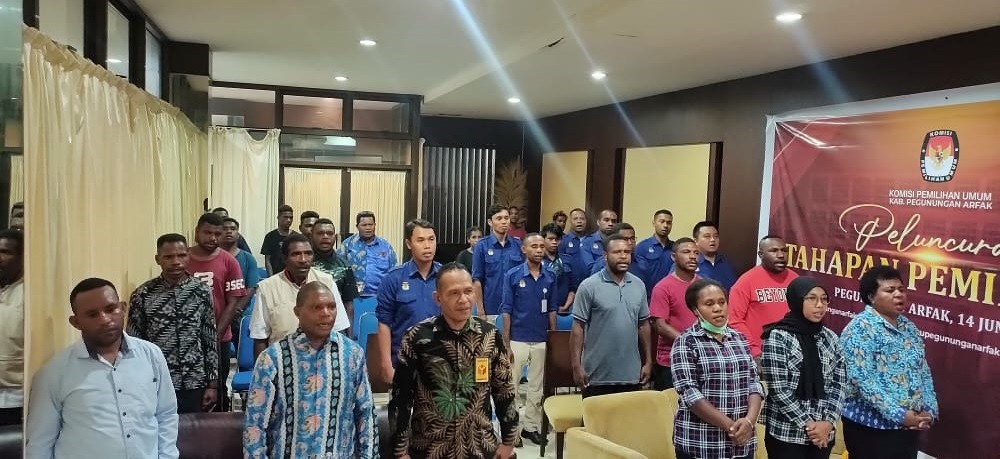 #TemanPemilih, KPU Kab. Pegunungan Arfak mengadakan Nonton Bersama Peluncuran Tahapan Pemilu 2024 secara daring, senin (14/06). Acara Peluncuran Tahapan Pemilu 2024 diselenggarakan KPU RI secara luring, dengan turut dihadiri Pimpinan Lembaga Negara mulai dari DPR RI, Kemendagri, DPD RI, Bawaslu RI, DKPP RI, serta Para Pejabat Eselon I dan II di Lingkungan KPU RI.