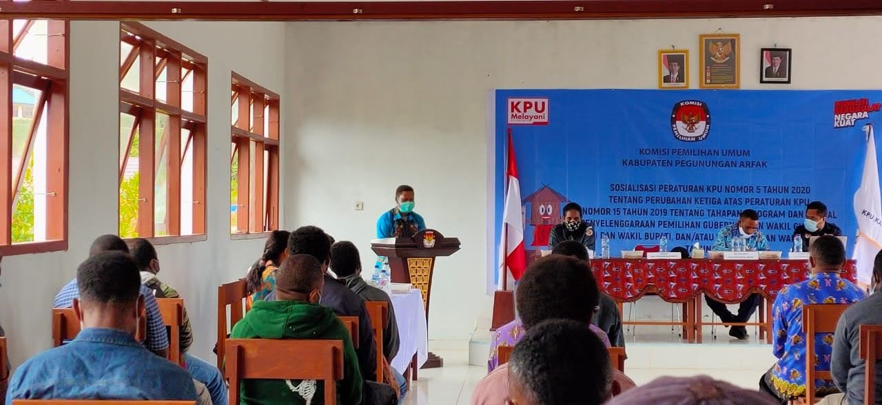 Komisi Pemilihan Umum Kabupaten Pegunungan Arfak mengawali dimulainya kembali tahapan Pilkada 2020 melalui berbagai kegiatan. Diantaranya dengan Penyampaian SK KPU Kabupaten Pegunungan Arfak tentang Pelaksanaan Lanjutan Tahapan Pilkada Pegunungan Arfak kepada Badan Pengawas Pemilu (Bawaslu) Kabupaten Pegunungan Arfak, pelantikan Panitia Pemungutan Suara (PPS), serta sosialisasi PKPU No. 5 tahun 2020.