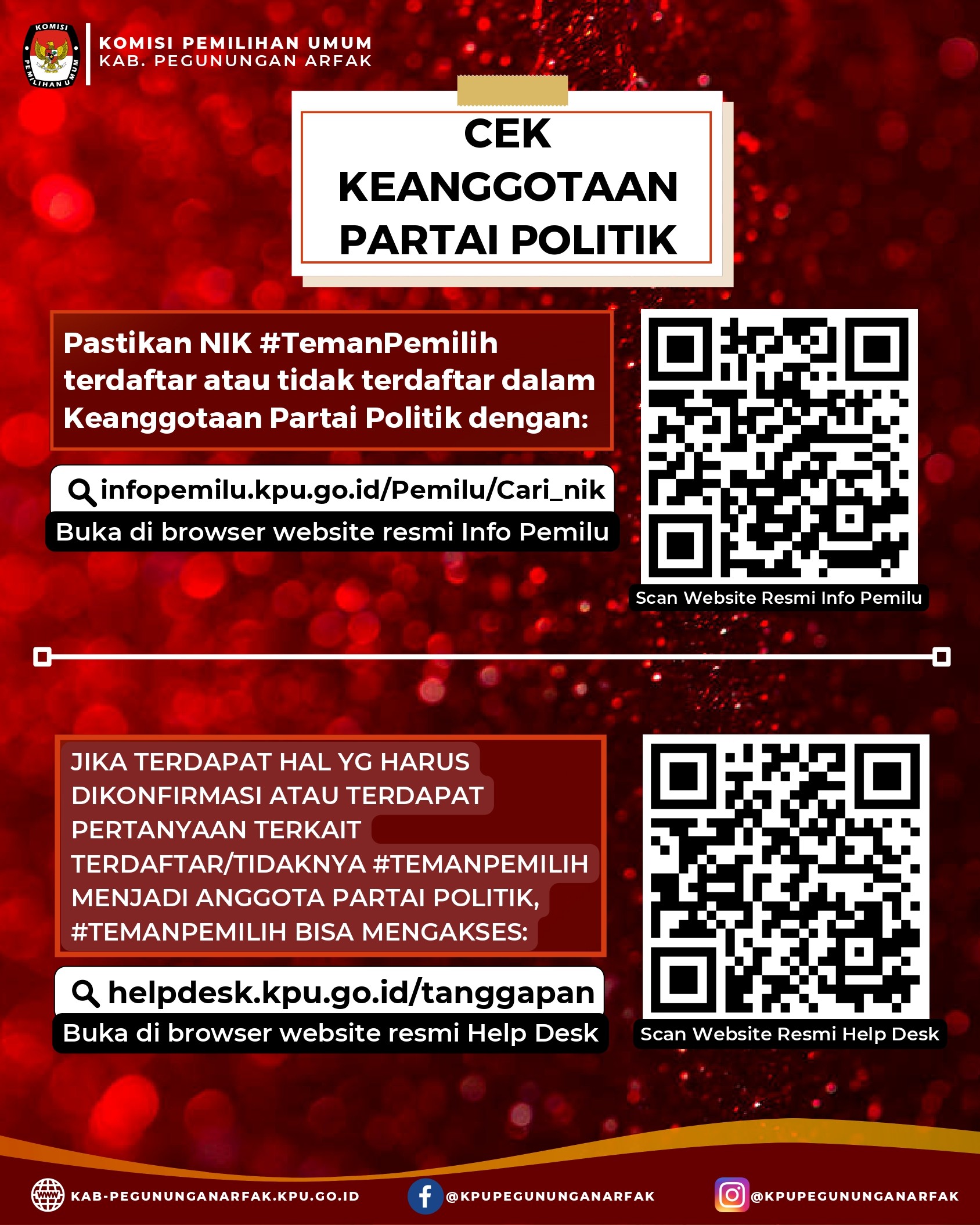 #TemanPemilih, kamu perlu tahu, kamu bisa mengecek apakah NIKmu terdaftar atau tidak dalam keanggotaan partai politik, di website https://infopemilu.go.id/Pemilu/Cari_nik atau scan barcode di bagian atas infografis.